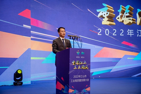 2022年2月9日,江山市高規(guī)格召開全市工業(yè)高質(zhì)量發(fā)展大會(huì),朱素芳、徐明峰、汪勝、胡炳泉、何日根等市四套班子領(lǐng)導(dǎo)參加。公司董事長(zhǎng)王榮、總經(jīng)理章群峰及相關(guān)領(lǐng)導(dǎo)受邀參會(huì)。