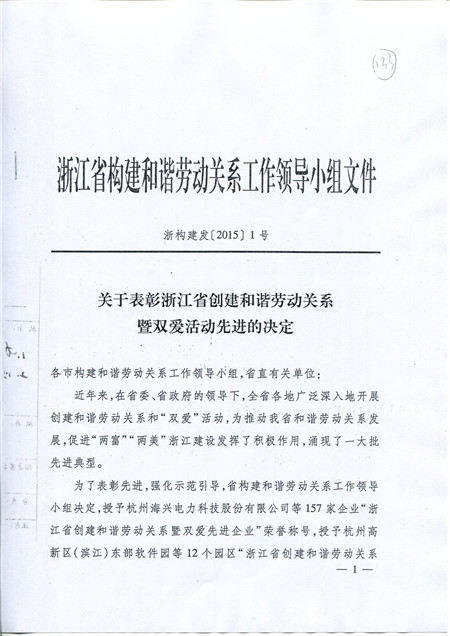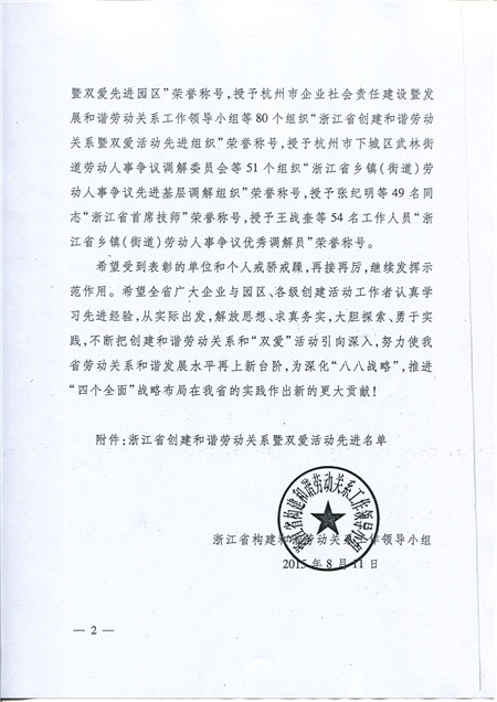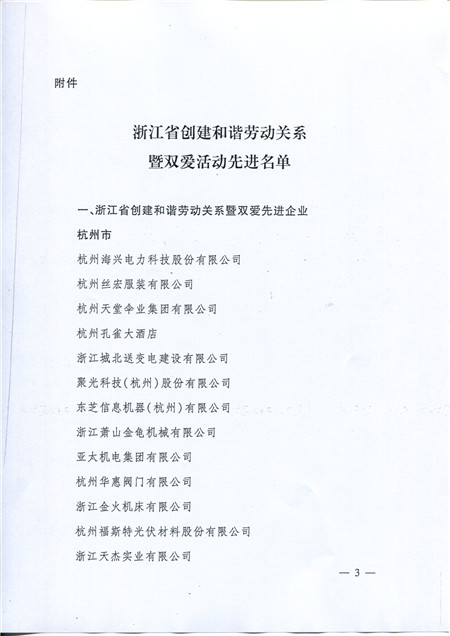 喜訊:科潤公司被評為浙江省創(chuàng)建和諧勞動關(guān)系暨雙愛先進(jìn)企業(yè)
