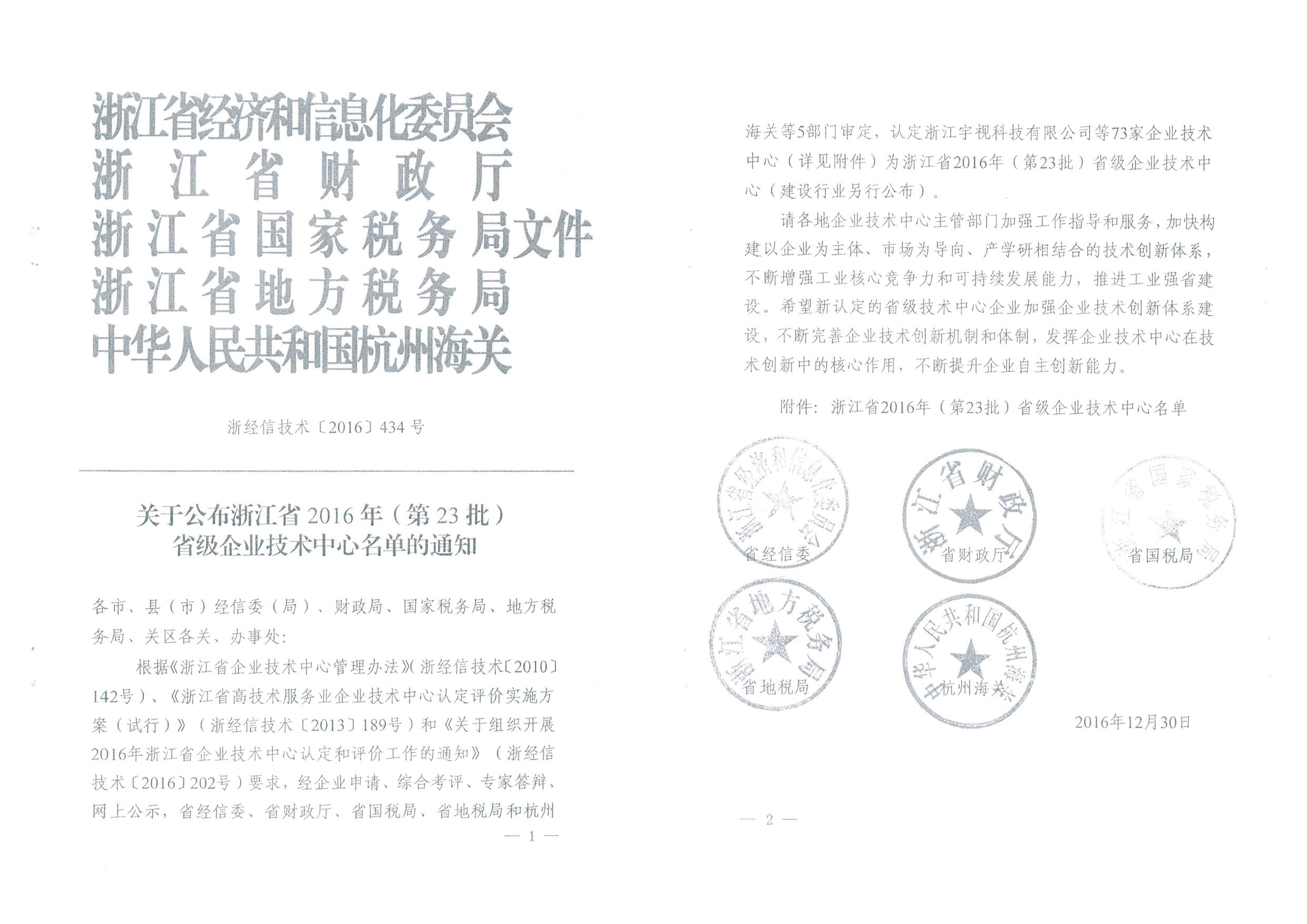 2016年12月30日,公司獲評(píng)“省級(jí)企業(yè)技術(shù)中心”。