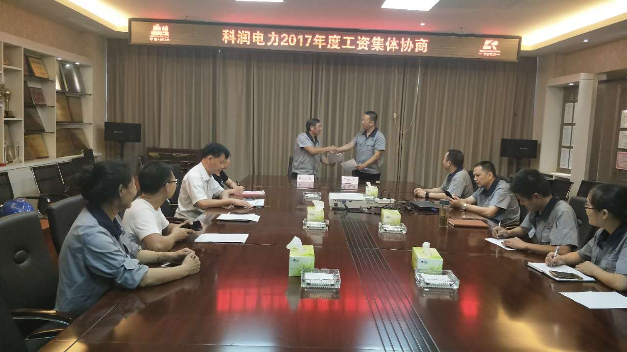市總工會領(lǐng)導(dǎo)楊清泉參加會議并做了點評發(fā)言。他說,科潤電力公司是我市的新三板上市公司,是行業(yè)龍頭企業(yè),多年來管理做的好,解決就業(yè)好,關(guān)愛職工好,工會工作好;本次工資集體協(xié)商會議是有序的、規(guī)范的、成功的;是企業(yè)民主管理、溝通協(xié)商的好形式;符合《浙江省職工代表大會條例》、《浙江省企業(yè)工資集體協(xié)商條例》;要進(jìn)一步樹立“企業(yè)依靠職工發(fā)展,職工依靠企業(yè)生存”的理念;要不斷完善企業(yè)管理制度,深入開展好以職代會為主要形式的民主管理工作,為行業(yè)做出表率;企業(yè)工會要切實履職盡責(zé);廣大職工充分發(fā)揮主力軍作用,共同為企業(yè)做大做強(qiáng),為建設(shè)現(xiàn)工業(yè)強(qiáng)市獻(xiàn)計出力!