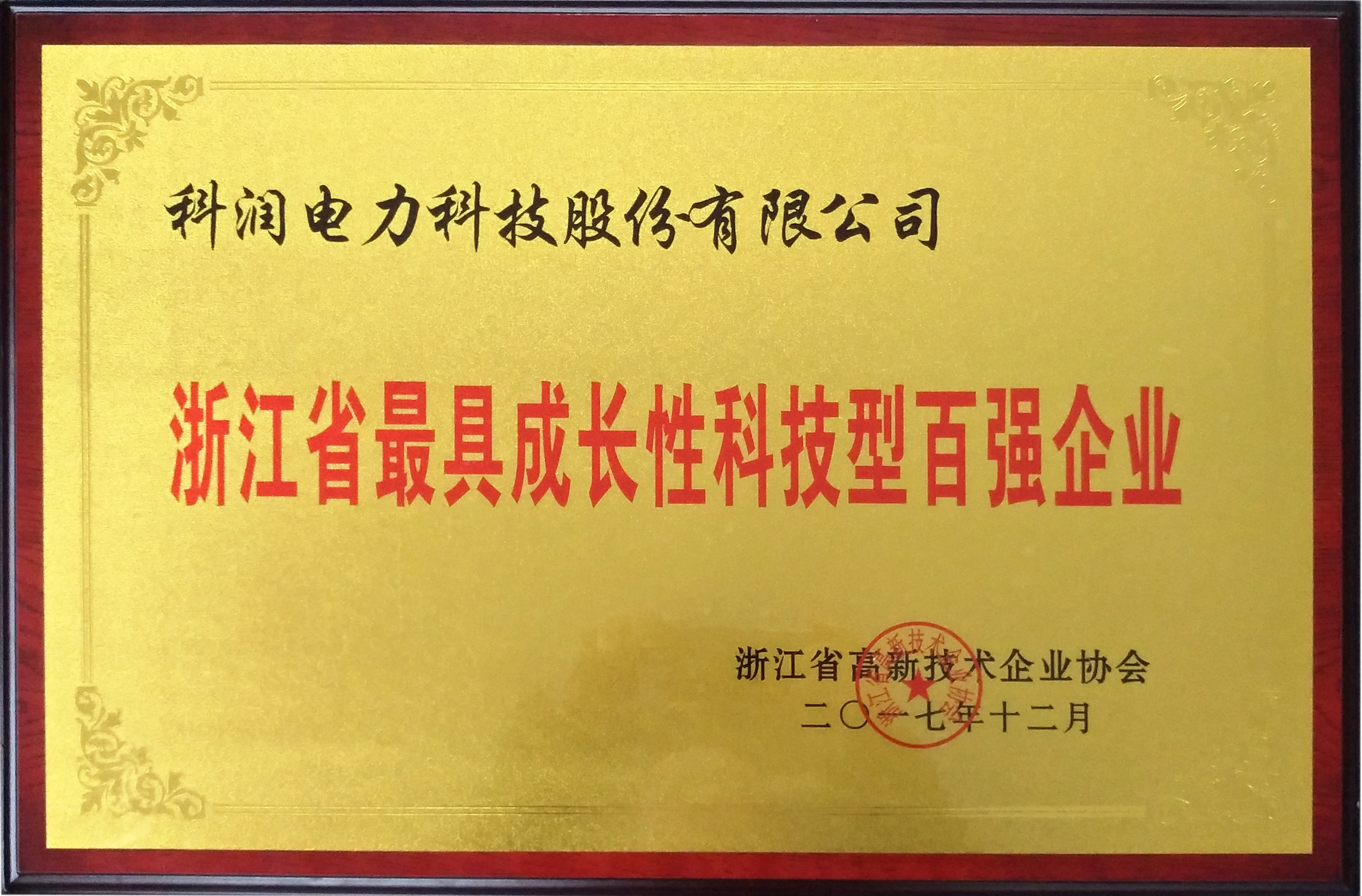 我司獲“浙江省最具成長(zhǎng)性科技型百?gòu)?qiáng)企業(yè)”