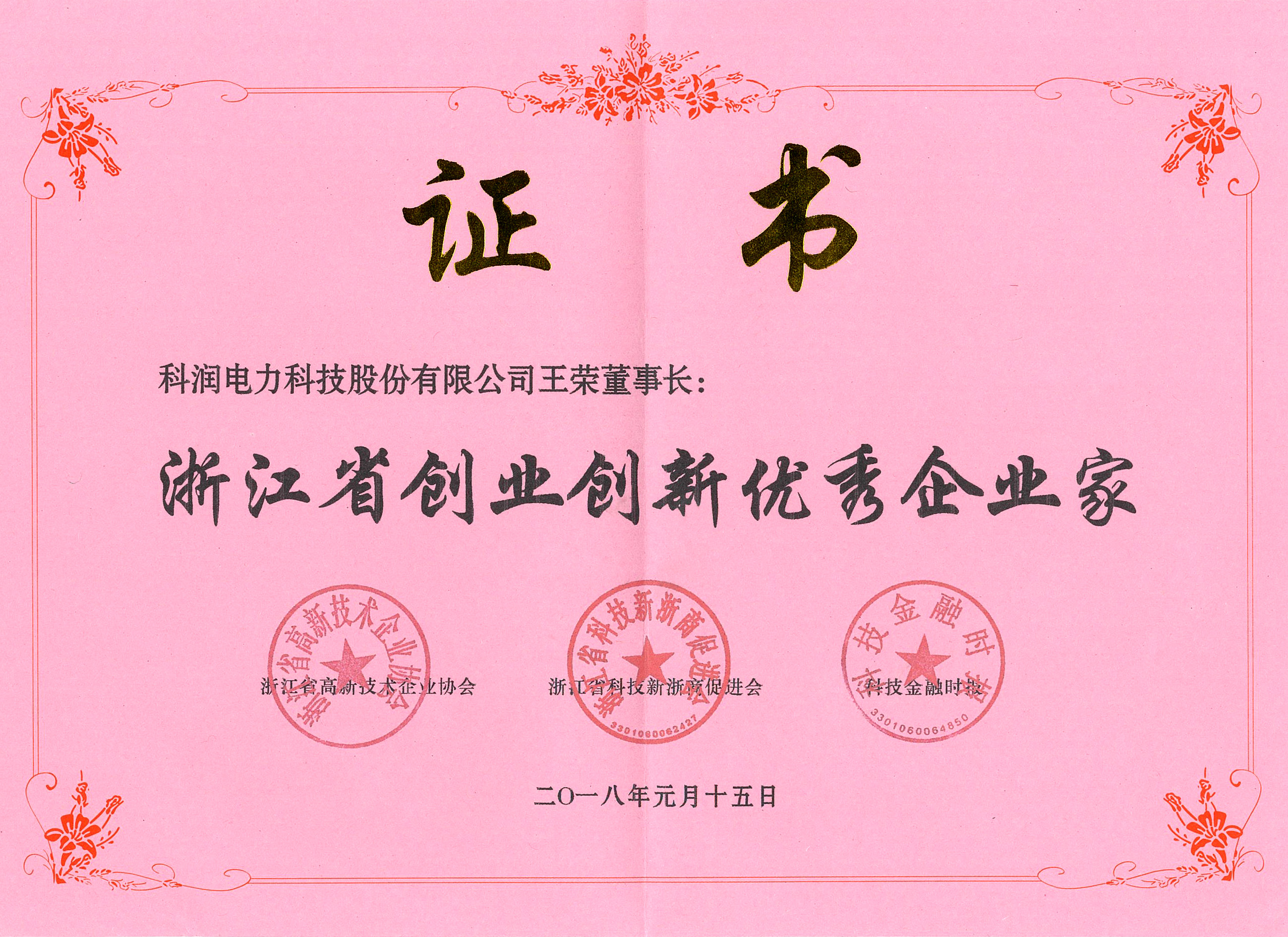 喜訊:公司董事長(zhǎng)獲“浙江省創(chuàng)業(yè)創(chuàng)新優(yōu)秀企業(yè)家”