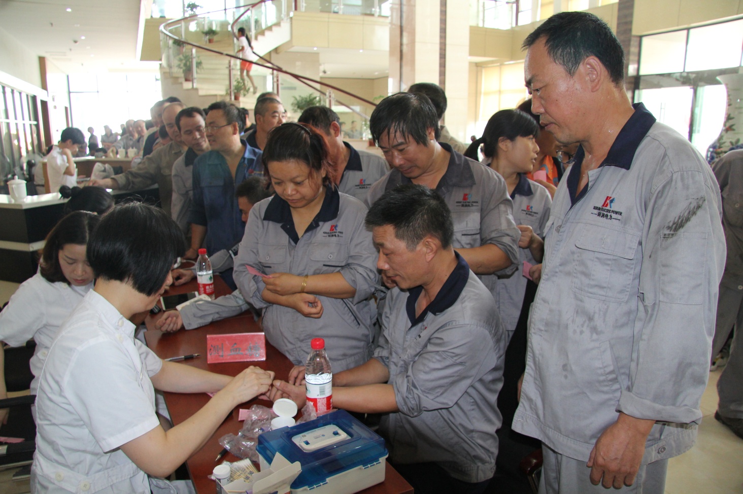 (醫(yī)護人員為員工測血壓、血糖)