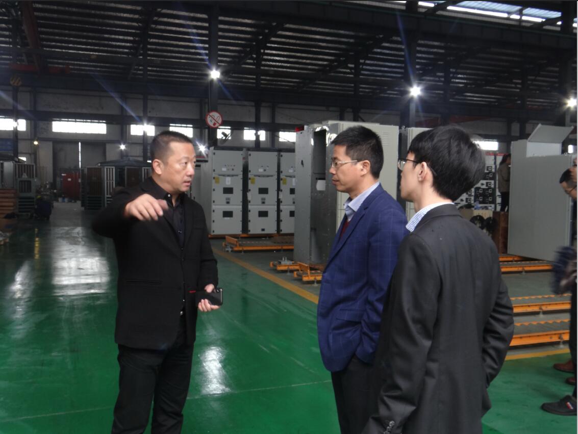 調(diào)研組一行在科潤公司總經(jīng)理章群峰的陪同下,先后實地考察了變壓器事業(yè)部、電氣事業(yè)部等多處生產(chǎn)基地。