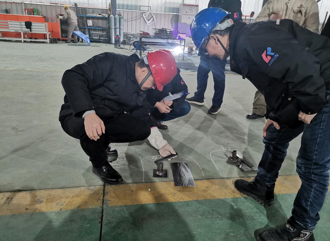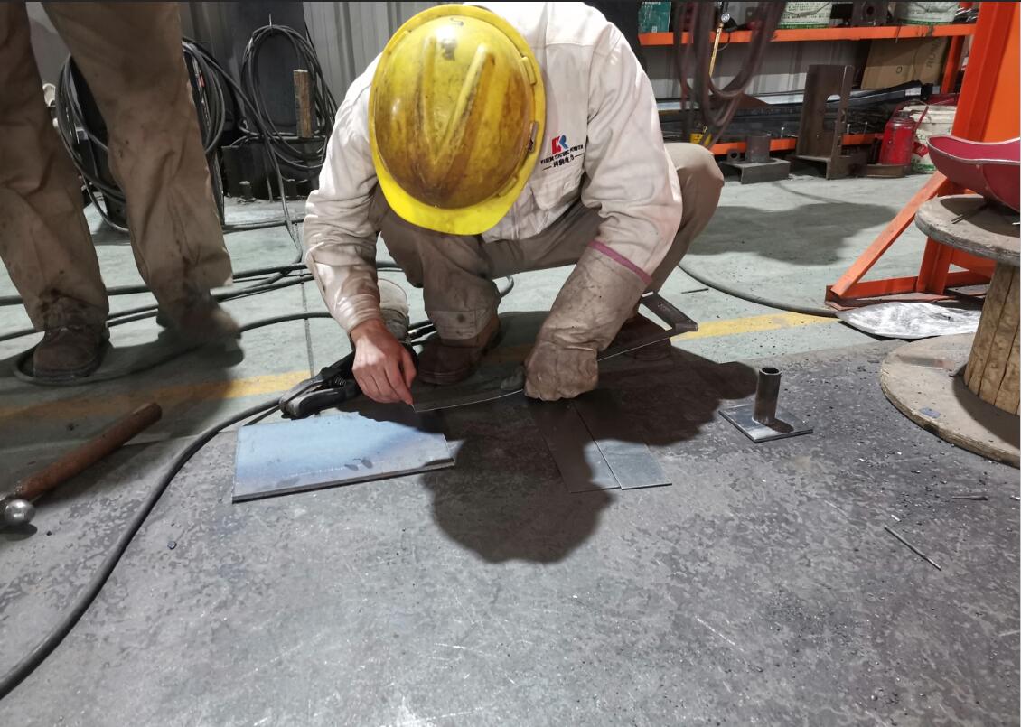 此次比武共有22名人員參加,分三個(gè)項(xiàng)目進(jìn)行:1)電弧焊焊接,將兩塊300*70的2.0mm鋼板完成平面焊接。要求焊縫外形均勻,焊道與基本金屬之間過(guò)度平滑,焊道和飛濺物清理干凈且無(wú)氣孔咬邊夾渣。2)角焊,使用氣體保護(hù)焊將一節(jié)中?32圓管對(duì)焊焊接進(jìn)一塊8mm帶孔鋼板。要求焊道外形均勻,焊道與基本金屬過(guò)度平滑,焊道和飛濺物清理干凈并無(wú)氣孔咬邊夾渣。焊道連接接弧處飽滿平順。3)氣割,將一8mmQ235板材氣割成均勻兩塊,要求表面粗糙度,切割面平面度,切口上緣融化程度,掛渣,缺陷的極限間距,直線度以及垂直度良好。最后以百分制為考核標(biāo)準(zhǔn),評(píng)出一、二、三等獎(jiǎng)。