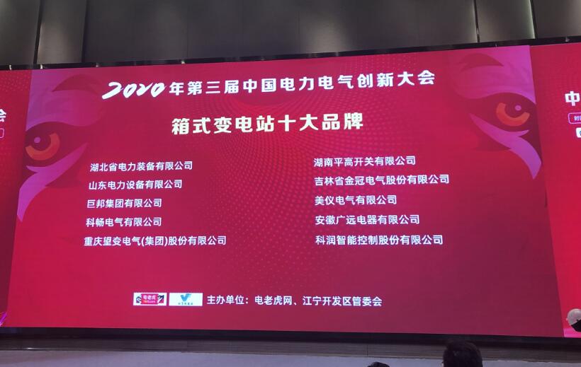 熱烈祝賀公司產(chǎn)品榮獲2020年度中國(guó)電力電氣行業(yè)“箱式變電站十大品牌”