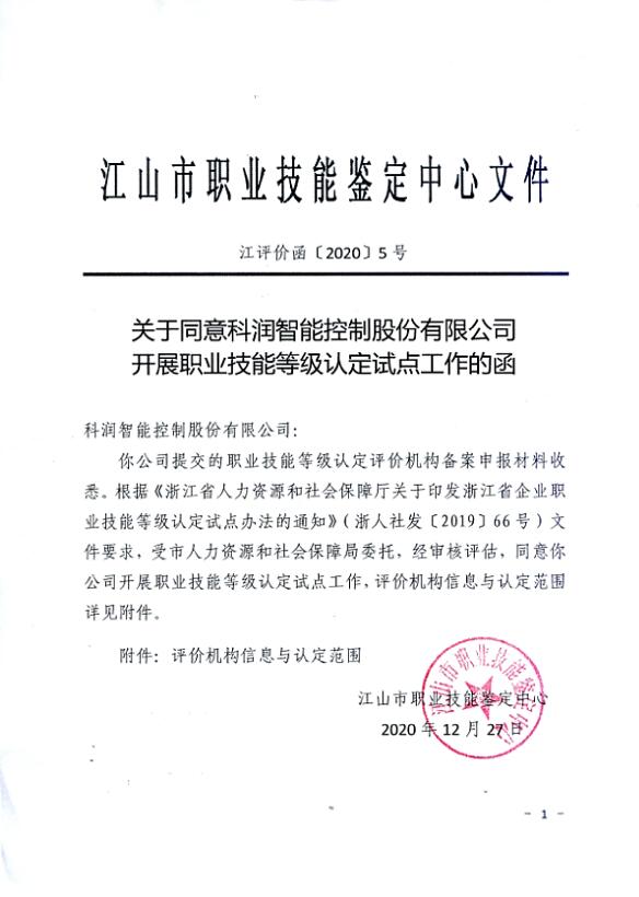 熱烈祝賀我司獲準(zhǔn)開展江山市職業(yè)技能等級(jí)認(rèn)定試點(diǎn)工作,成為江山市第二批職業(yè)技能等級(jí)認(rèn)定試點(diǎn)單位。