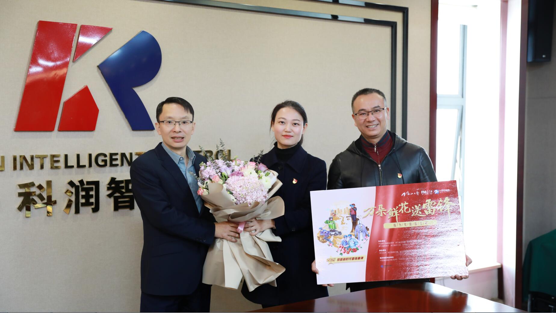 在學(xué)雷鋒紀念日到來之際,至今已連續(xù)舉辦十一屆的“萬朵鮮花送雷鋒”活動再次啟動。3月4日上午,在科潤智能控制股份有限公司的會議室里,志愿者們向公司的董事長王榮送上鮮花。