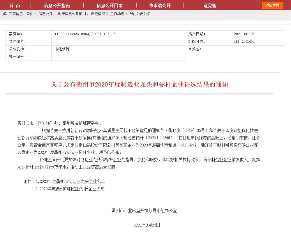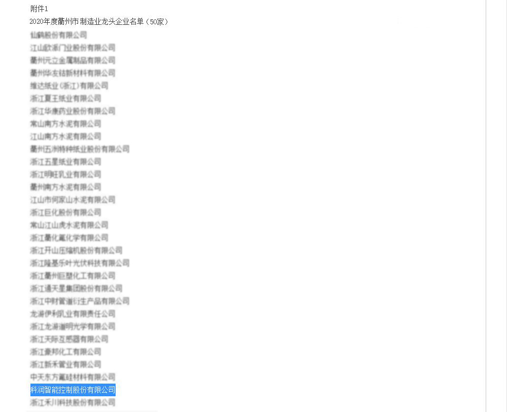 熱烈祝賀科潤(rùn)智控獲評(píng)2020年度衢州市制造業(yè)龍頭企業(yè)