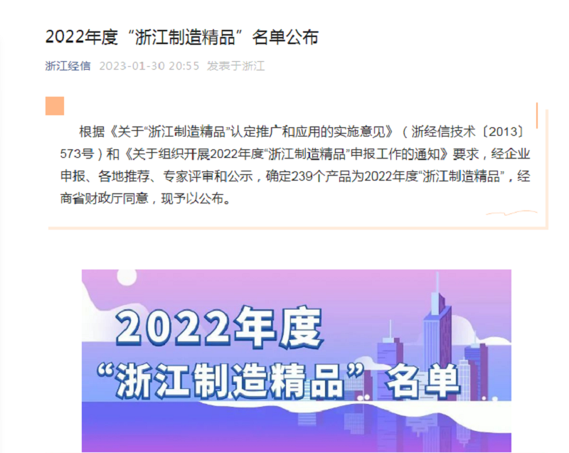 1月30日,浙江經(jīng)信發(fā)布了2022年度“浙江制造精品”名單,科潤(rùn)智能控制股份有限公司產(chǎn)品榜上有名。