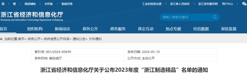2024510日,浙江省經(jīng)濟(jì)和信息化廳公布2023年度“浙江制造精品”名單,科潤智控產(chǎn)品榜上有名。